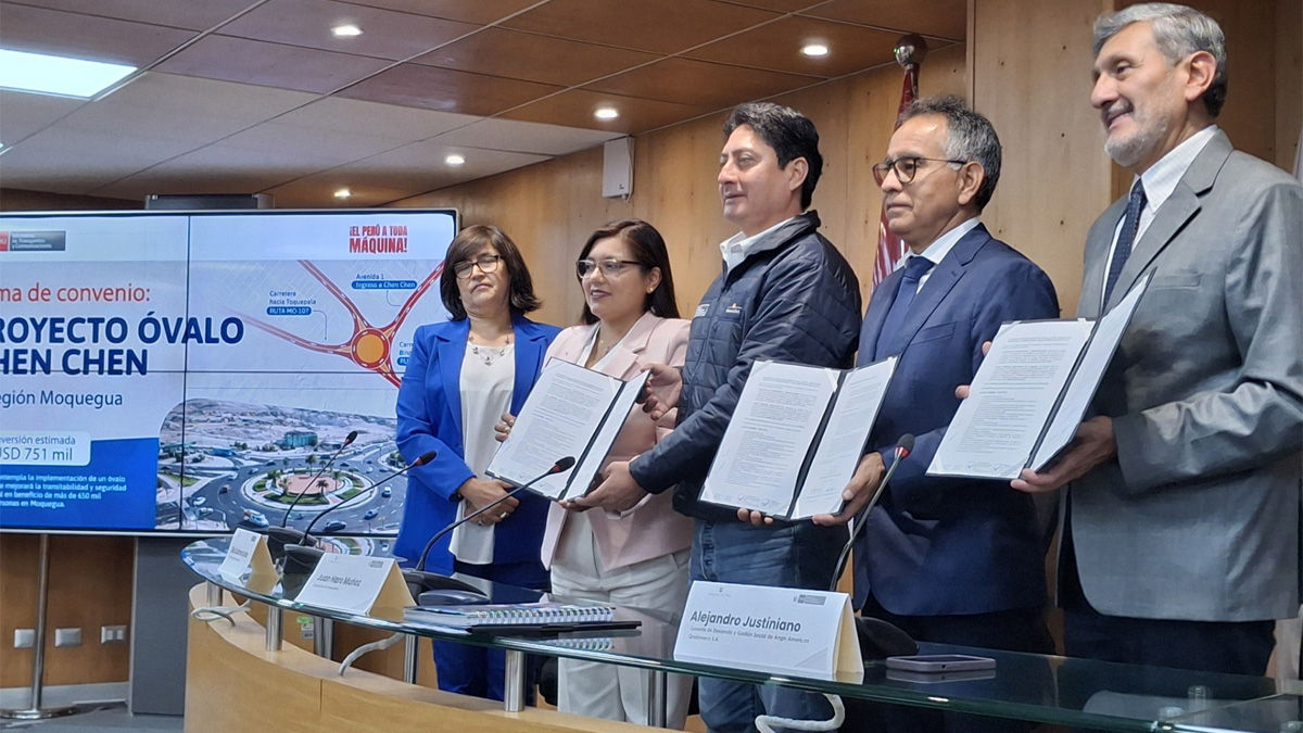 El esperado proyecto del óvalo Chen Chen en Moquegua se concretó tras la firma de un convenio de cooperación institucional entre la empresa Anglo American y el Ministerio de Transportes y Comunicaciones (MTC). La infraestructura vial se ubicará en la intersección de las carreteras Binacional y Toquepala, puntos estratégicos que conectan el comercio del sur del Perú con Bolivia. Esta obra mejorará la transitabilidad y seguridad de 22 mil pobladores, quienes actualmente enfrentan riesgos por la señalización deficiente y la falta de infraestructura adecuada.